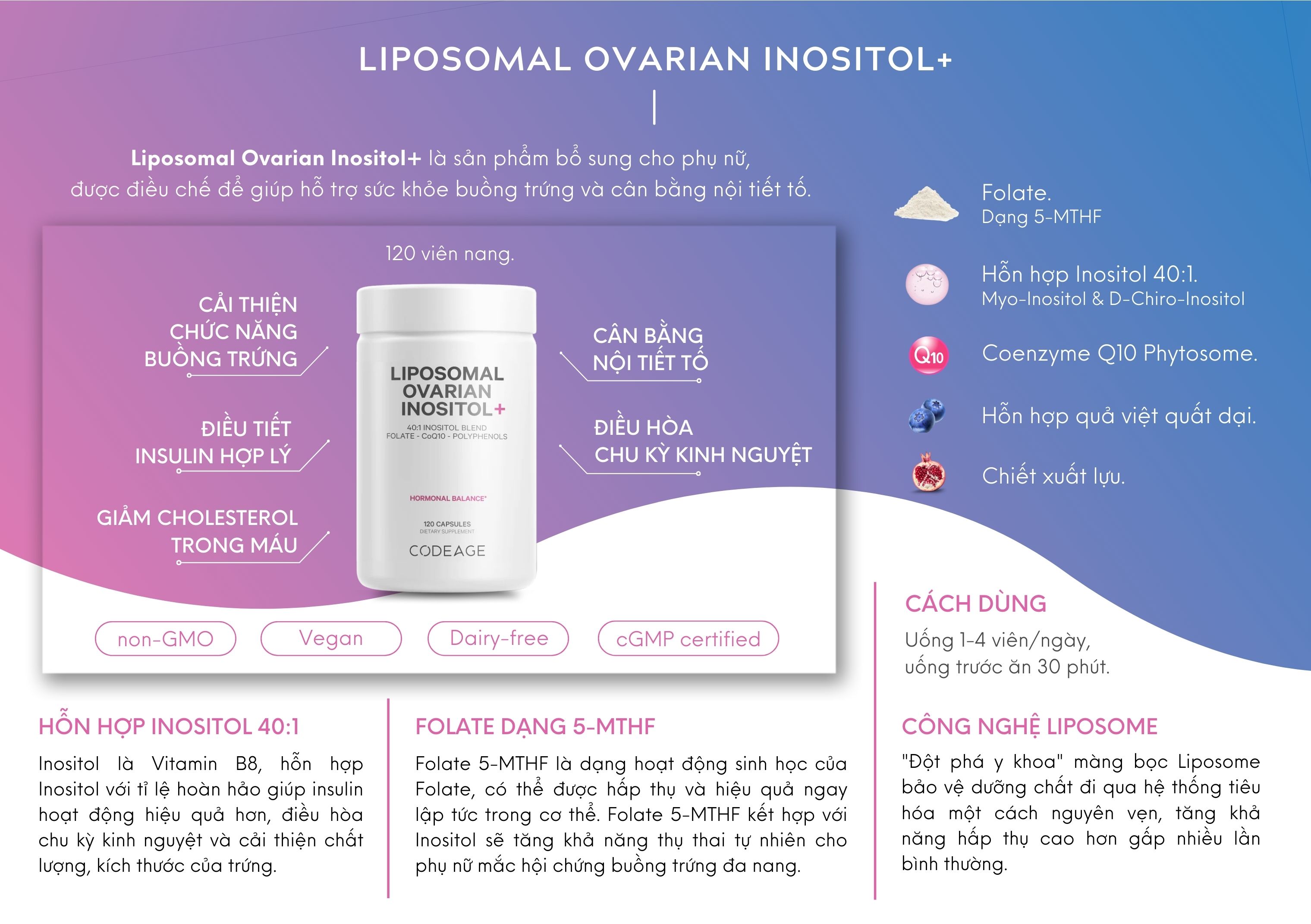 Viên uống Liposomal Ovarian Inositol: Là sản phẩm bổ sung cho phụ nữ, được điều chế để giúp sức khỏe buồng trứng và cân bằng nội tiết tố nữ.