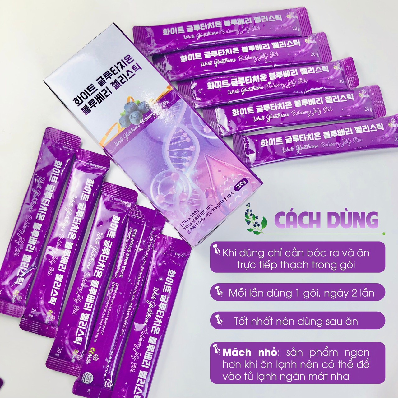 Đặc tính sản phẩm Thạch Collagen trắng da Glutathione vị việt quất