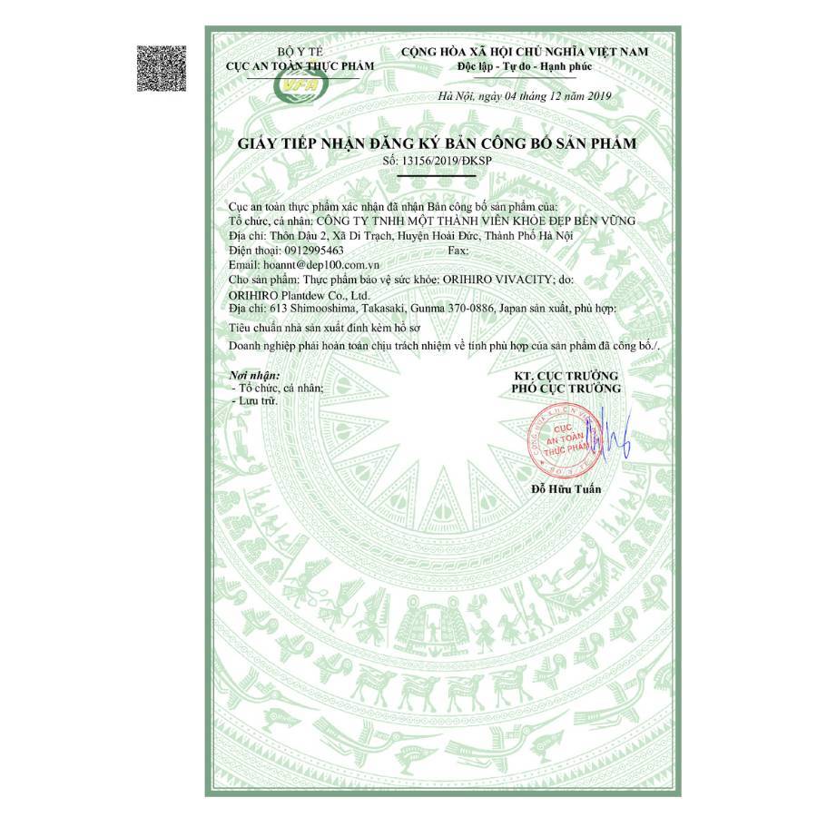 TPCN Viên uống tinh chất hàu tươi, tỏi, nghệ Orihiro 180 viên được nhập khẩu chính hãng từ Nhật Bản về Việt Nam, có đầy đủ giấy chứng nhận và kiếm định của bộ y tế.