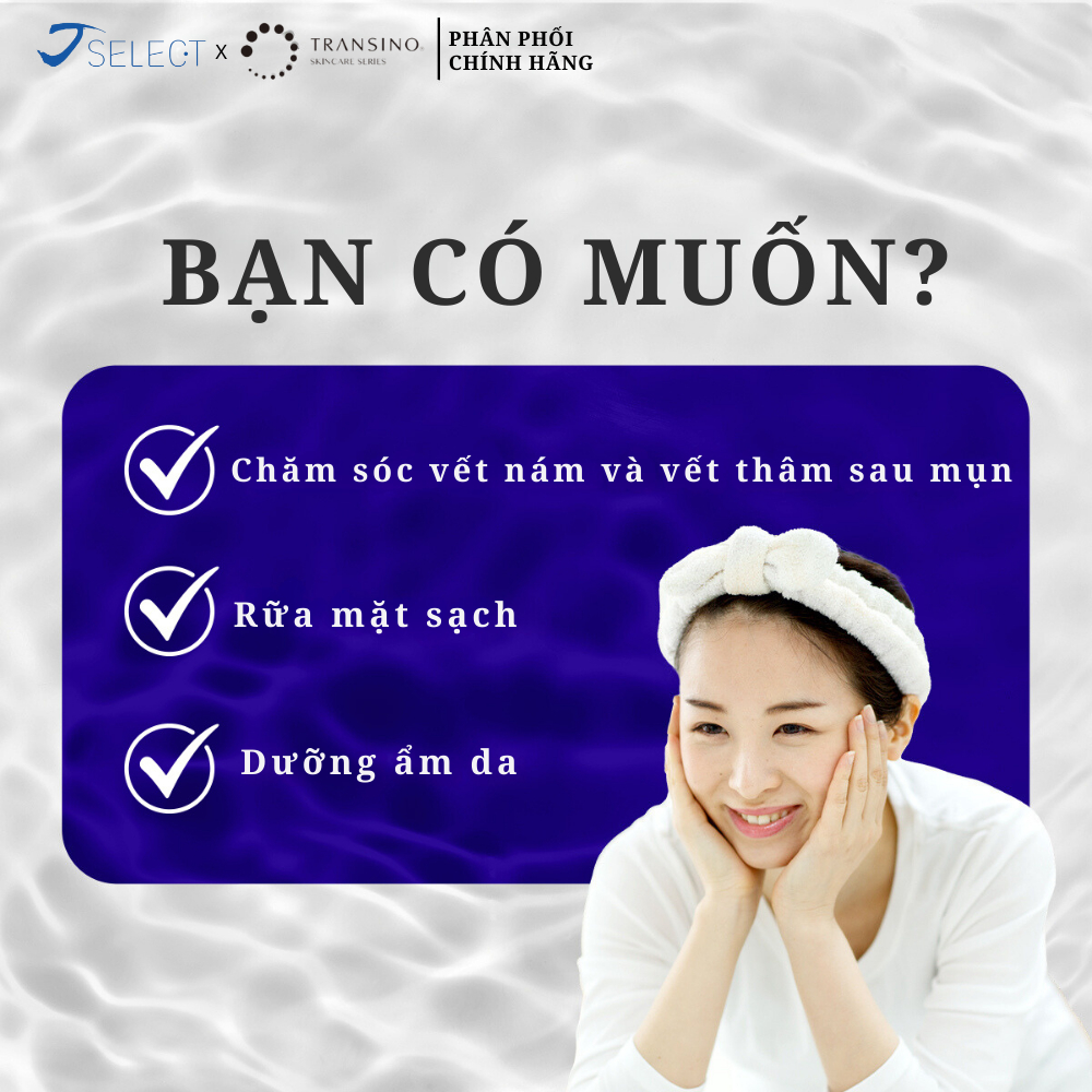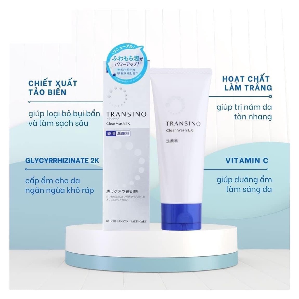 Sữa rửa mặt Transino Clear Wash không chỉ hoàn thành tốt nhiệm vụ làm sạch bụi bẩn, bã nhờn bên trong lỗ chân lông và các gốc nám trên bề mặt da, mà còn dưỡng ẩm cho da mềm mại, mịn màng và trắng sáng tự nhiên.
