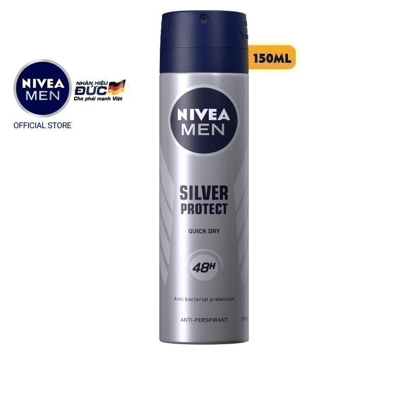 Xịt Ngăn Mùi NIVEA MEN Silver Protect Phân Tử Bạc Ngăn Khuẩn Gây Mùi Vượt Trội (150 ml) - 82959