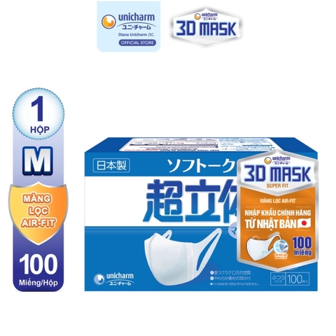 Khẩu Trang Ngăn Khói Bụi Unicharm 3D Mask Size M Hộp 100 Miếng là sản phẩm khẩu trang đến từ thương hiệu Unicharm – nhà sản xuất khẩu trang số 1 Nhật Bản. Với các tính năng ưu việt và đặc biệt là khả năng siêu bảo vệ người dùng trước bụi mịn PM10, khẩu trang Unicharm 3D Mask Super Fit đang là sự lựa chọn hàng đầu của những người dân thành thị mỗi khi ra đường trước tình trạng ô nhiễm không khí ngày càng nghiêm trọng hiện nay.