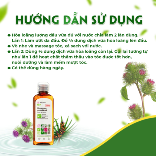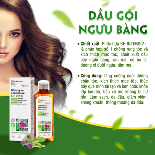 Thành phần: Dầu Gội Elfa Pharm chiết xuất Cây Ngưu Bàng chống rụng tóc 200ml với chiết xuất chính từ tinh dầu của 7 loại thảo dược quý: dầu ngưu bàng, dầu thầu dầu, dầu hạt lanh, dầu tuyết tùng, dầu hương thảo, dầu quả bơ, dầu hạt mỡ chứa protein thông minh, loại bỏ hóa chất trong nước, chống rụng tóc, làm sạch tóc và da đầu, dành cho tóc yếu thường xuyên gãy rụng, làm cho tóc chắc khỏe, bảo vệ và cải thiện tình trạng của tóc.