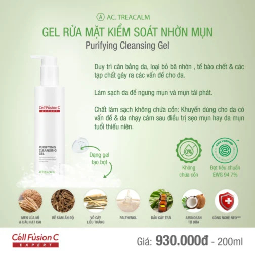 - Chất làm sạch KHÔNG CHỨA CỒN và thành phần an toàn xanh EWG khuyên dùng cho da có vấn đề dầu mụn và da nhạy cảm sau điều trị sẹo mụn.