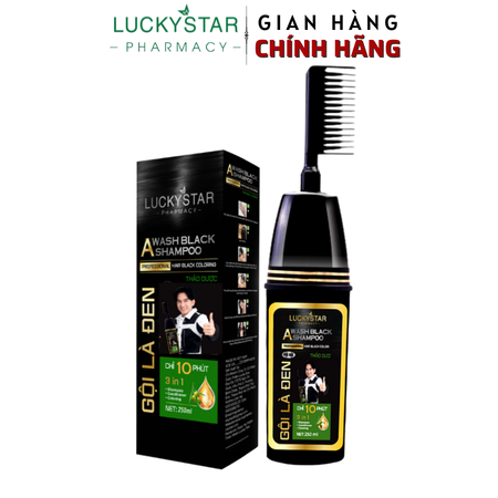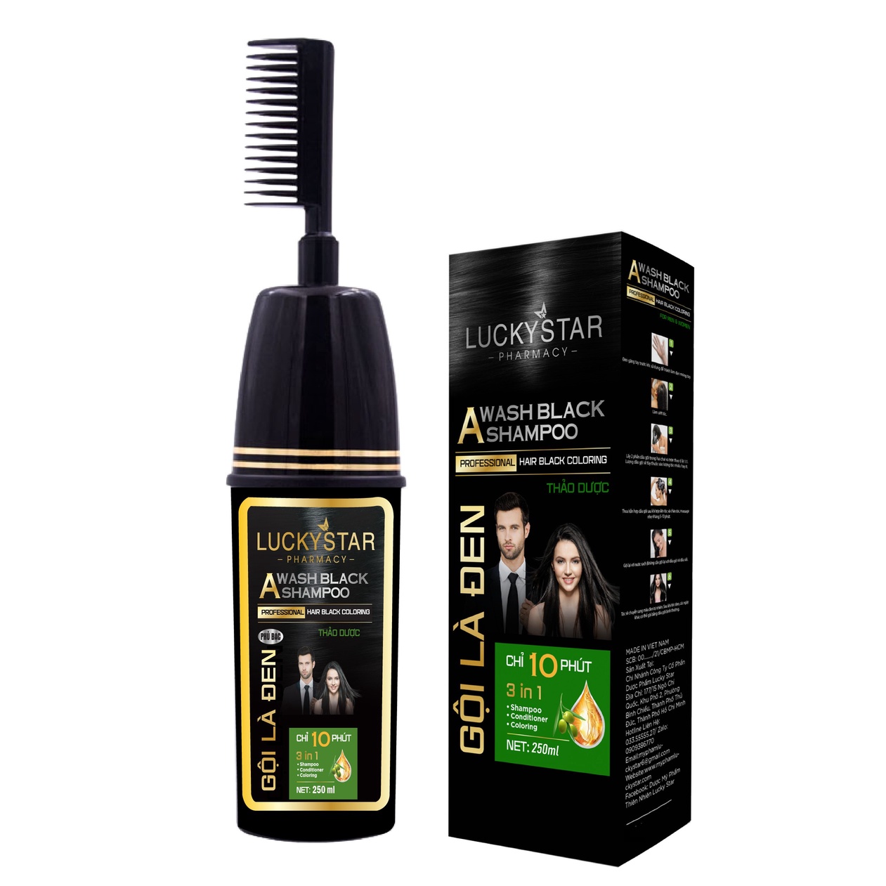 - Gội Là Đen Lucky Star mang lại mái tóc đen bóng tự nhiên, ngăn ngừa rụng tóc, không gây kích ứng da, không có tác dụng phụ.