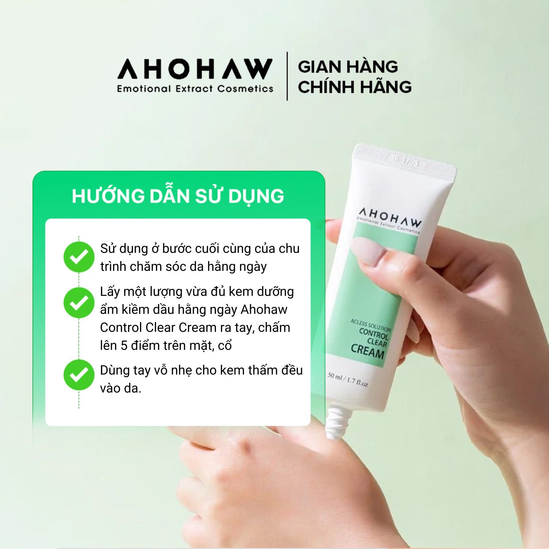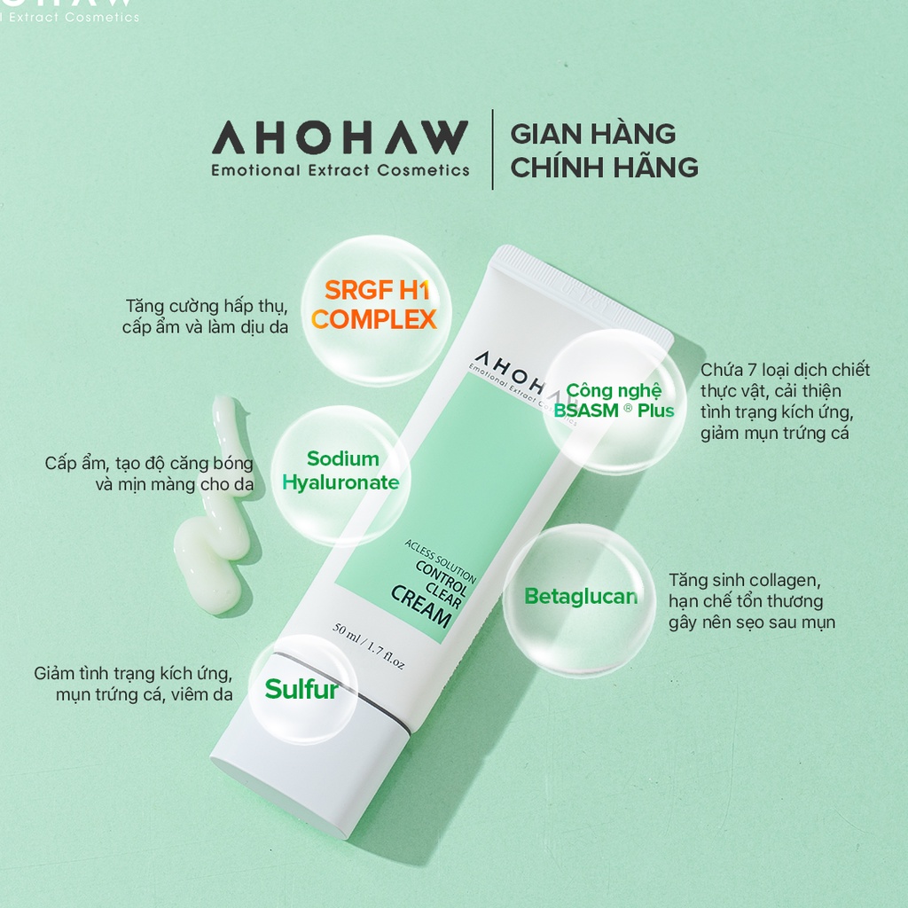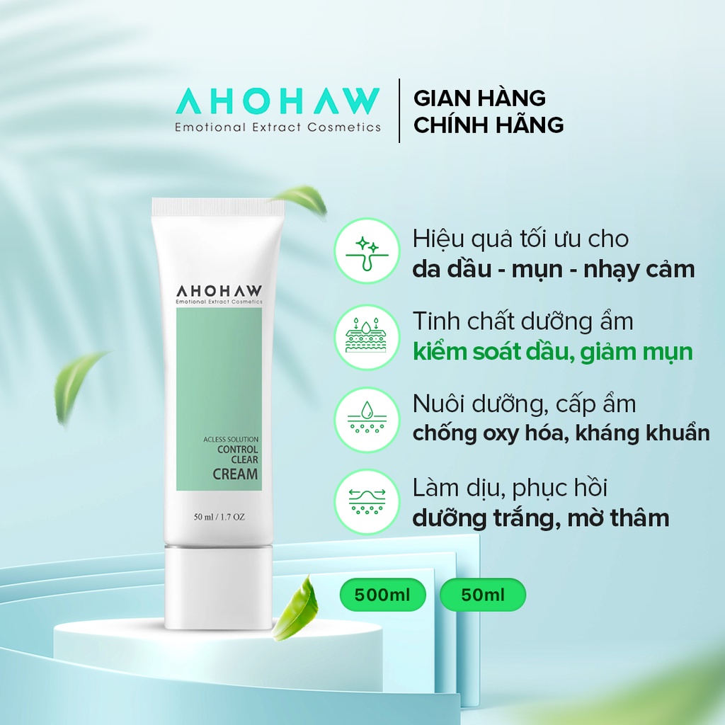 Kem Dưỡng Da Kiểm Soát Dầu, Giảm Mụn AHOHAW Control Clear Cream 500ml - Phục Hồi, Làm Dịu, An Toàn Cho Da Nhạy Cảm