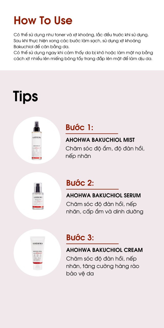 - Lấy một lượng vừa đủ kem Bakuchiol thoa lên mặt sau đó massage nhẹ nhàng để kem thẩm thấu vào da. Sử dụng 2 lần sáng tối mỗi ngày hoặc theo hướng dẫn của chuyên gia.