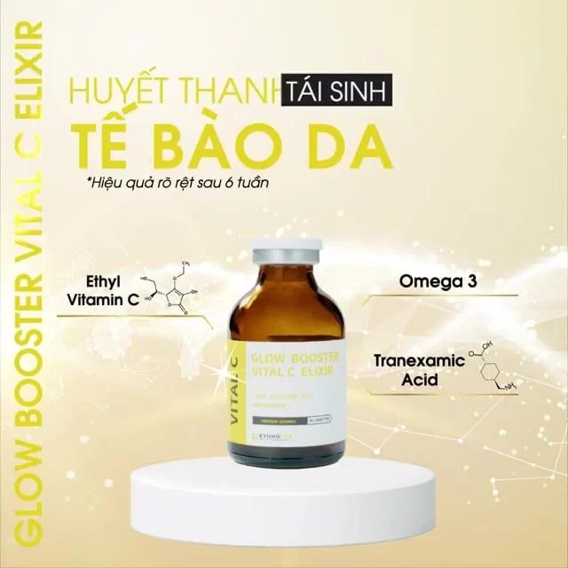Tinh chất Kyung Lab Glow Booster Vital C Elixir với khả năng ngừa lão hóa, hạn chế các đốm nám, tàn nhang. Đồng thời hỗ trợ làm mờ nếp nhăn và cải thiện tình trạng da không đều màu.