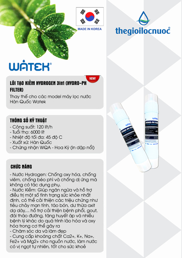 LÕI TẠO KIỀM HYDROGEN 3in1 (HYDRO-PH FILTER) |