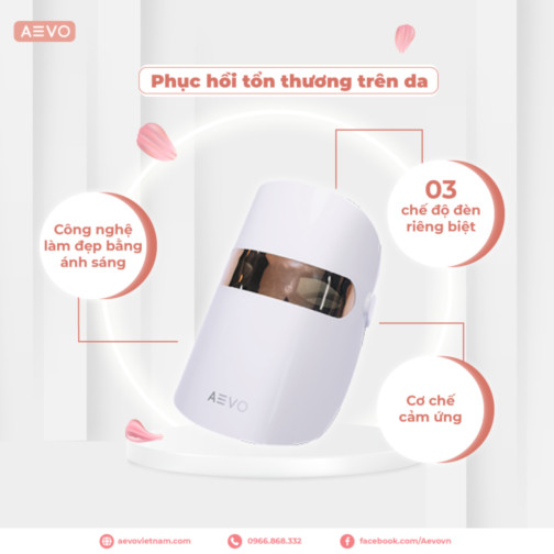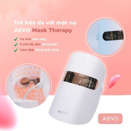 Mặt nạ AEVO Mask Therapy sử dụng ba nguồn sáng: đỏ, xanh và cam. Thông qua vật liệu dẫn ánh sáng công nghệ nano, theo nguyên lý quang trị liệu sinh học massage nhẹ nhàng thúc đẩy nhanh quá trình trao đổi chất của da, giúp da trắng sáng, căng bóng.