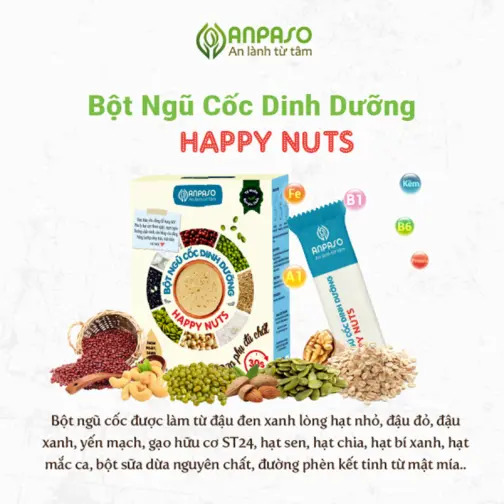 Tên sản phẩm: Ngũ Cốc Dinh Dưỡng Happy Nuts – Ngũ Cốc Tiện Lợi Anpaso