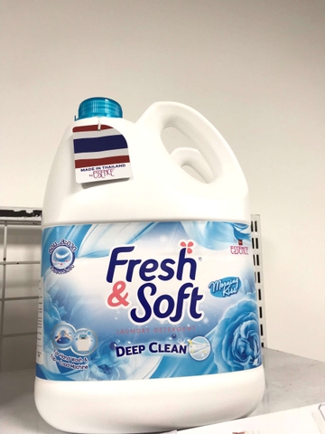 Nước Giặt Fresh Soft (3L) - Có công thức với thành phần chứa các hoạt chất đánh tan vết bẩn một cách nhanh chóng và hiệu quả, dể lại hương thơm nhẹ nhàng trên quần áo của bạn. Ngoài khả năng giặt sạch hiệu quả, sản phẩm còn mang lại độ mềm mại và mịn màng cho quần áo giúp chăm sóc quần áo cho cả gia đình bạn.