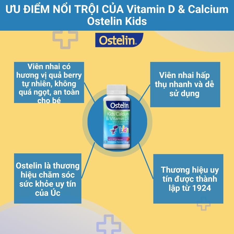 Vitamin D & Calcium Ostelin Kids Úc chính là giải pháp tối ưu cho trẻ. Sản phẩm có chứa cả Canxi và Vitamin D, cực hiệu quả đối với việc cải thiện chiều cao của bé yêu.
