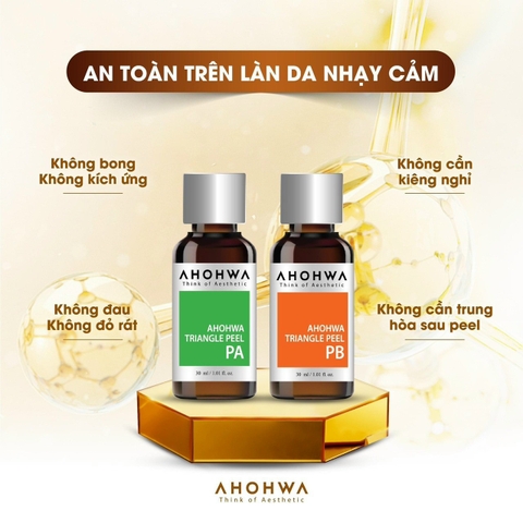 Ahohwa Triangle Peel với sự kết hợp của 3 loại acid AHA - BHA - PHA đáp ứng được mọi tiêu chí khi peel như: Tác động nhanh, hiệu quả và an toàn, hạn chế kích ứng và không gây bong tróc như dòng peel hoá học thông thường.