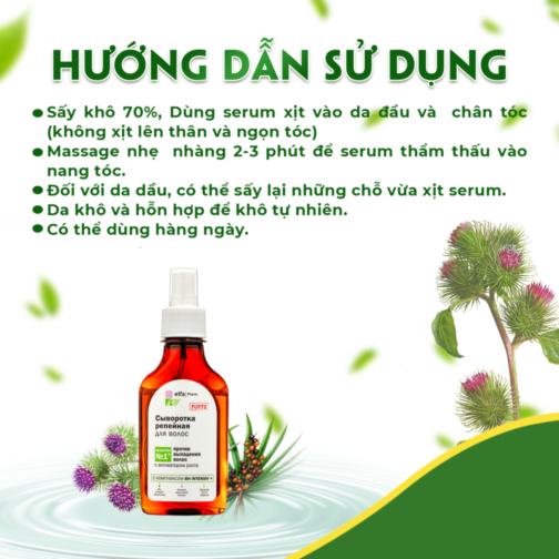Serum Elfa Pharm Chiết Xuất Cây Ngưu Bàng Kích Thích Mọc Tóc 100ml sử dụng cho tóc yếu hay gãy rụng.
