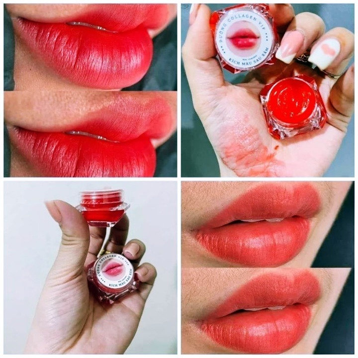 + Son dưỡng collagen giúp kích màu môi của bạn sau khi phun xăm cho màu sắc tự nhiên cho đôi môi duy trì màu son môi luôn tươi tắn và không bị xỉn màu. Hơn nữa còn giúp môi tránh khỏi các tác hại do ánh sáng mặt trời gây ra, làm giàu và dưỡng ẩm cho đôi môi suốt cả ngày.