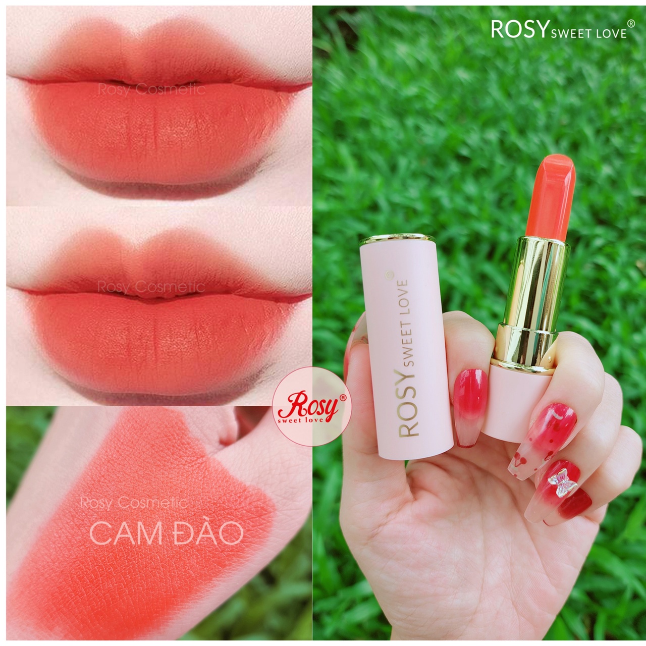 Cam đào: Từ bao giờ đã trở thành một màu son "must-have" của các cô gái. Màu cam đào là sự pha trộn tuyệt vời giữa hai gam màu cam và san hô, cực kỳ tôn da, giúp bạn trở nên xinh đẹp hơn với nhiều phong cách trẻ trung, mạnh mẽ nhưng rất ngọt ngào