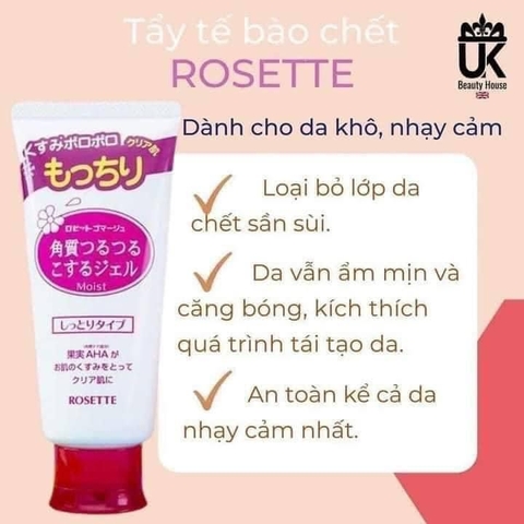 Tẩy tế bào chết Rosette Peeling Gel nhẹ nhàng loại bỏ các lớp tế bào chết một cách hiệu quả và ngăn ngừa các vấn đề về da như lỗ chân lông bị tắc nghẽn, mụn đầu đen, bã nhờn và làn da bị xỉn màu.