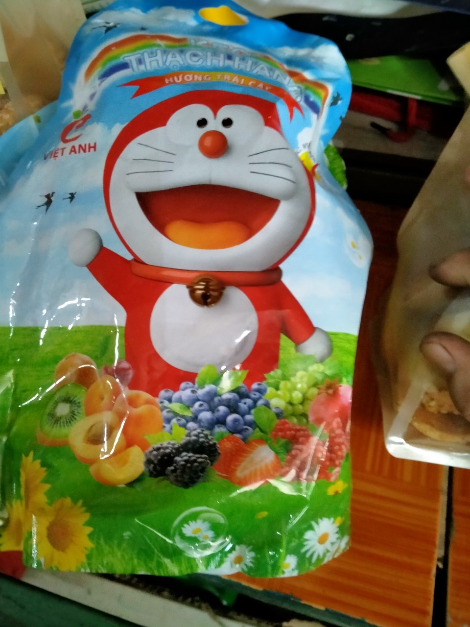 Kẹo thạch dai dai Doraemon hương trái cây 320gram túi 12 cái Hàng đảm bảo vệ sinh an toàn thực phẩm. Ngon như nhà làm. Nói không với chất tạo ngọt. Sử dụng 100% đường cát. Có 5 hương vị cho mọi người chọn lựa màu xanh lá vị Kiwi màu đỏ vị Dâu tây màu cam vị Đào màu tím vị Nho kyoho màu vàng vị dưa lưới