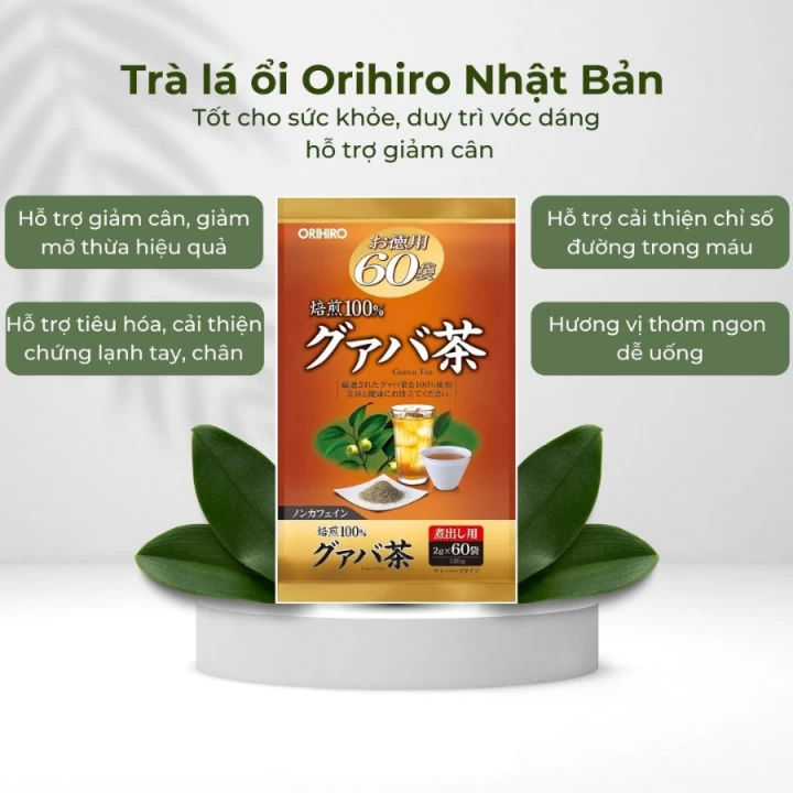 Trà ổi Orihiro Nhật chiết xuất từ lá ổi non tự nhiên, đánh tan mỡ thừa, hỗ trợ ổn định đường huyết, cải thiện hệ tiêu hóa, giúp ngủ ngon, giảm chứng đau bụng kinh.
