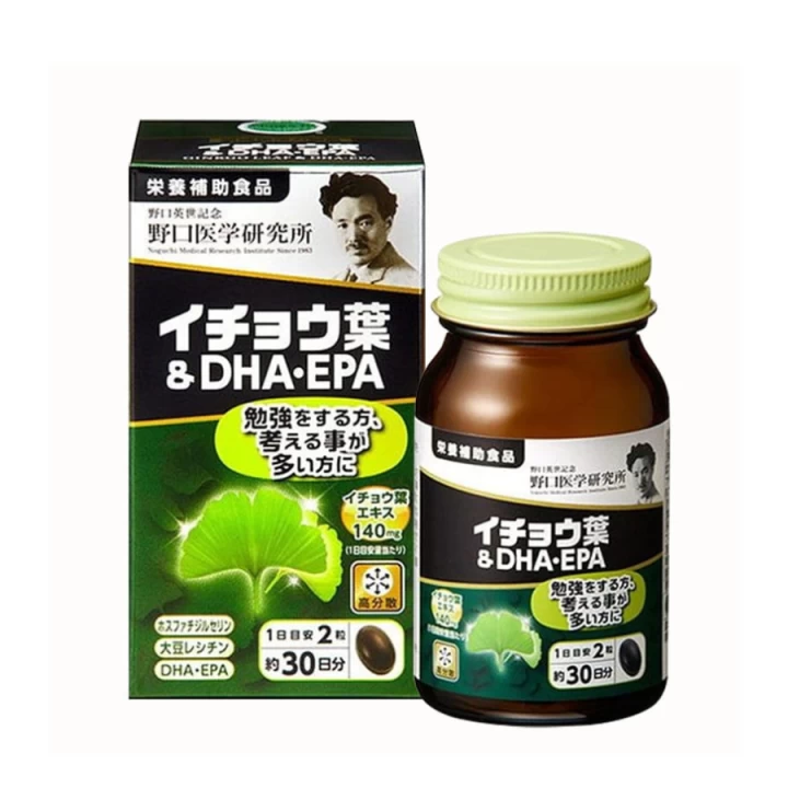 Viên uống bổ não DHA EPA Ginkgo Noguchi 60 viên bổ sung 3 thành phần quan trọng hỗ trợ chức năng của não bộ, sửa chữa tế bào tổn thương, chống oxy hóa. bên cạnh đó còn giúp tăng cường thị lực và chống đột quỵ.