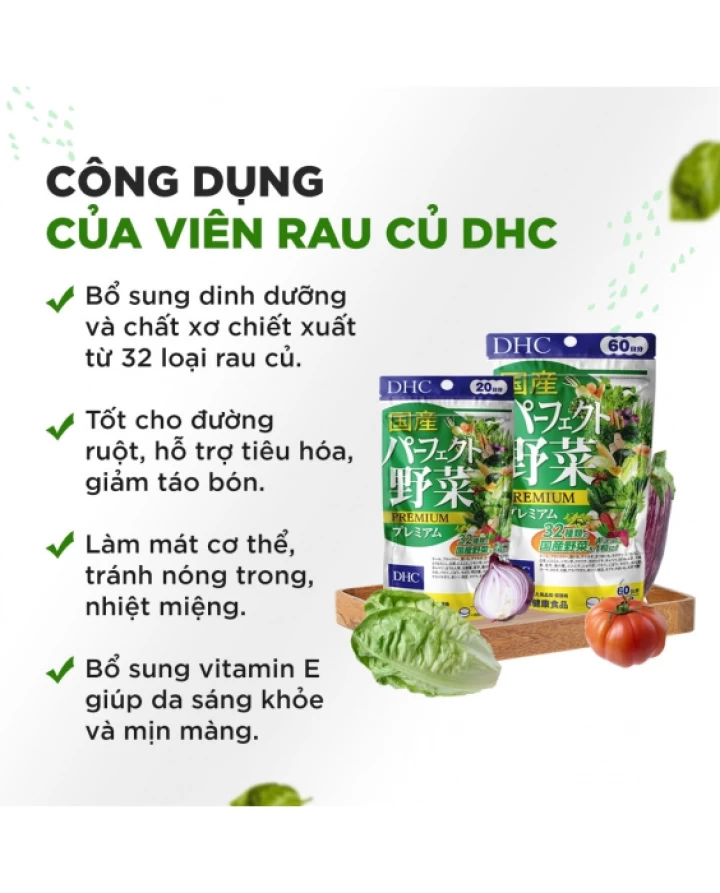 - Viên uống bổ sung rau củ DHC giúp bạn duy trì sức khỏe tốt và làn da tươi trẻ, rạng rỡ.