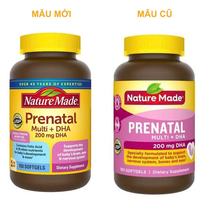 - Viên Uống Dinh Dưỡng Nature Made Prenatal Multi DHA bao gồm các chất dinh dưỡng thiết yếu của vitamin tổng hợp với hàm lượng 200 mg DHA có trong 01 viên uống, không có màu nhân tạo. Có thể bổ sung đầy đủ axit amin, làm giảm nguy cơ sinh con bị khuyết tật về não và cột sống.