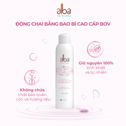 Alba Skin Care đóng chai bằng bao bì cao cấp dùng trong dược phẩm – Công nghệ BOV giúp giữ được sự tinh khiết, nguyên vẹn của nước khoáng thiên nhiên, độ pH = 6 phù hợp và tốt cho mọi loại da, an toàn cho mọi lứa tuổi.