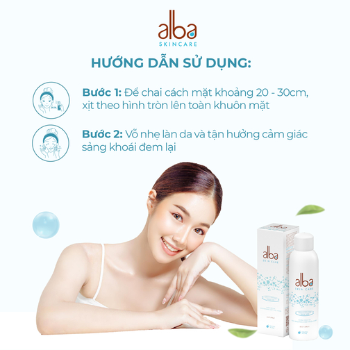 Chúng ta yêu thích các sản phẩm 2 trong 1 vì tiện dụng. Nước xịt khoáng Alba hoạt động như một loại dưỡng ẩm và toner. Vì vậy, sau khi làm sạch da vào buổi sáng / tối, hãy sử dụng nước xịt khoáng Alba để làm săn chắc da cũng như cung cấp nước cho da mặt và được chăm sóc một cách tự nhiên nhất.